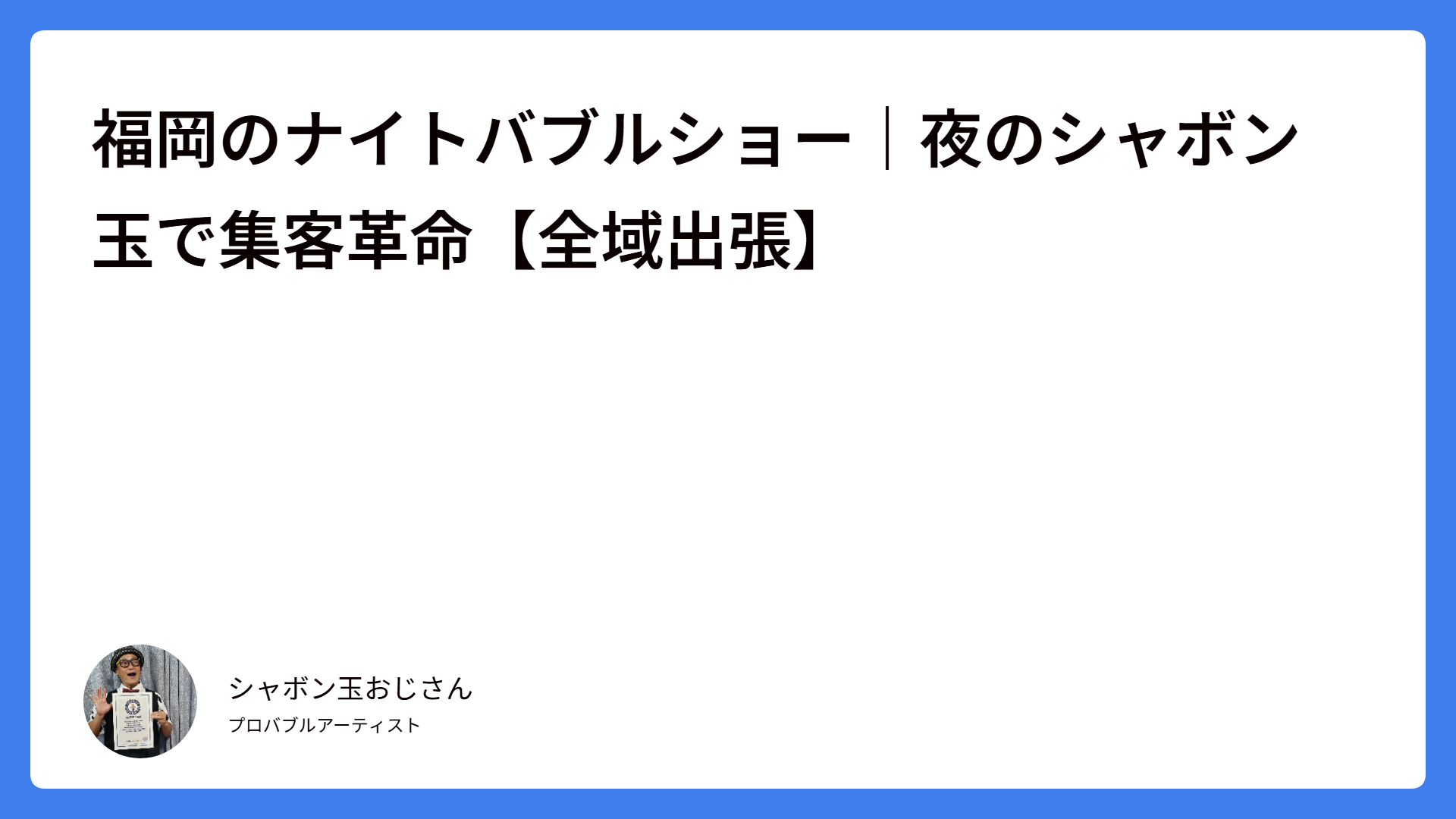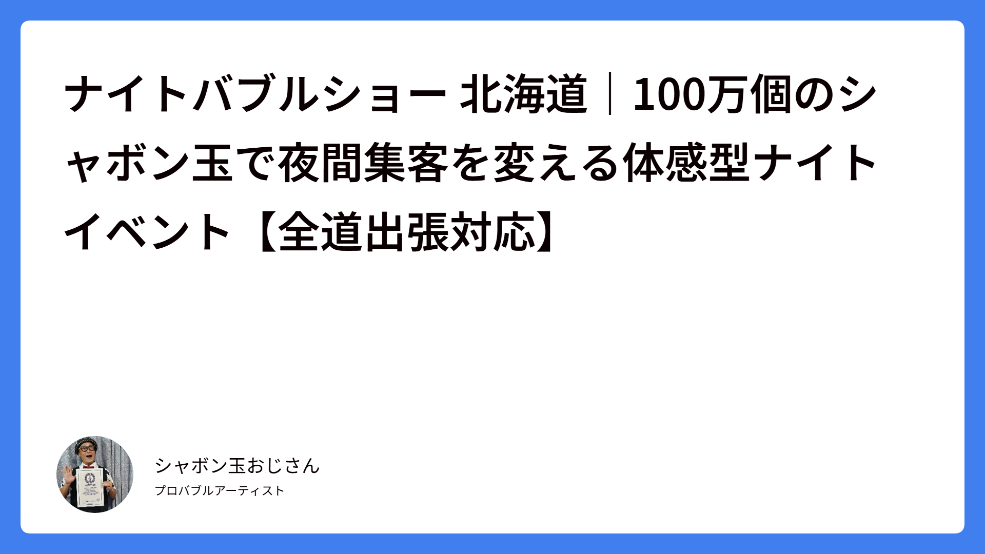ここからは、フェスタin大谷で実際にナイトバブルショーを実施した私たちだからこそお伝えできる、現場のリアルなレポートをお届けします。